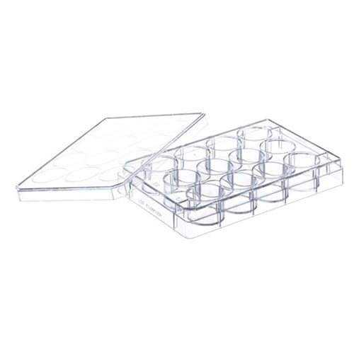 Plate, Cell Culture 12 well, PS, Clr, CELLSTAR TC, Lid w. Cond. Rings, Sterile, Indiv. Pk / PK 100