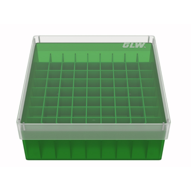 Freezer Box PP Green for 1.5, 2.0ml Cryo Tubes 52mm H 81 well