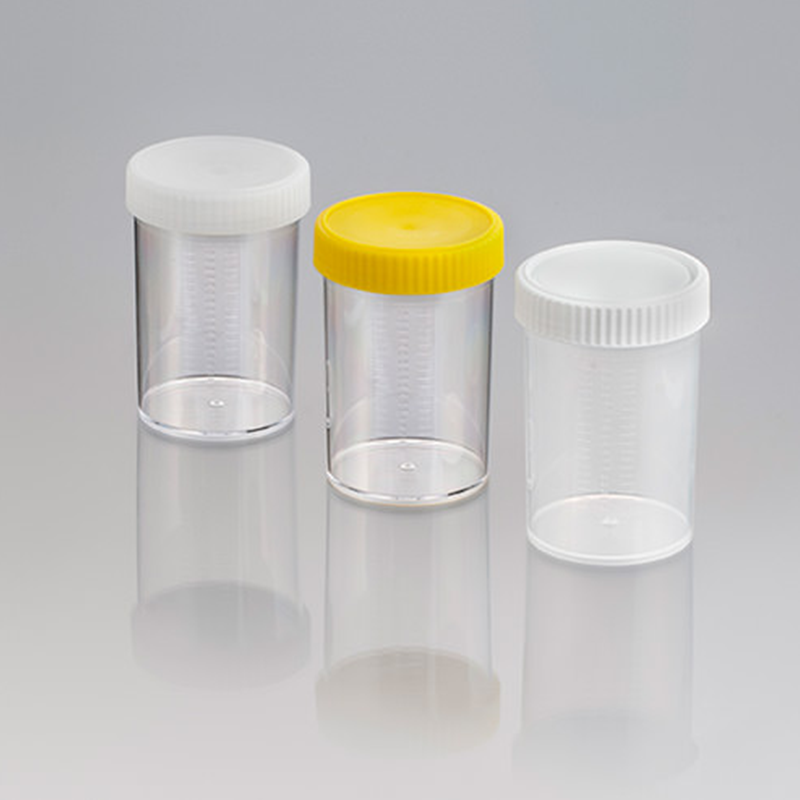 Container PP 250ml flat bottom unlabelled yellow screw cap STERILE PK 147