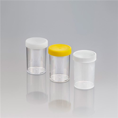 Container PP 250ml flat bottom unlabelled white screw cap / PK 147