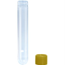 Tube 13 ml, 101 x 16.5 mm, PP, with enclosed YELLOW cap / PK 1000