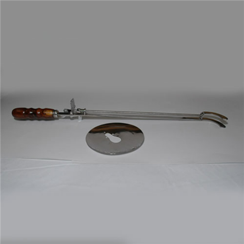 Crucible tongs with radiation shield. Made of 18/8 stainless steel, 420mm distance to shield