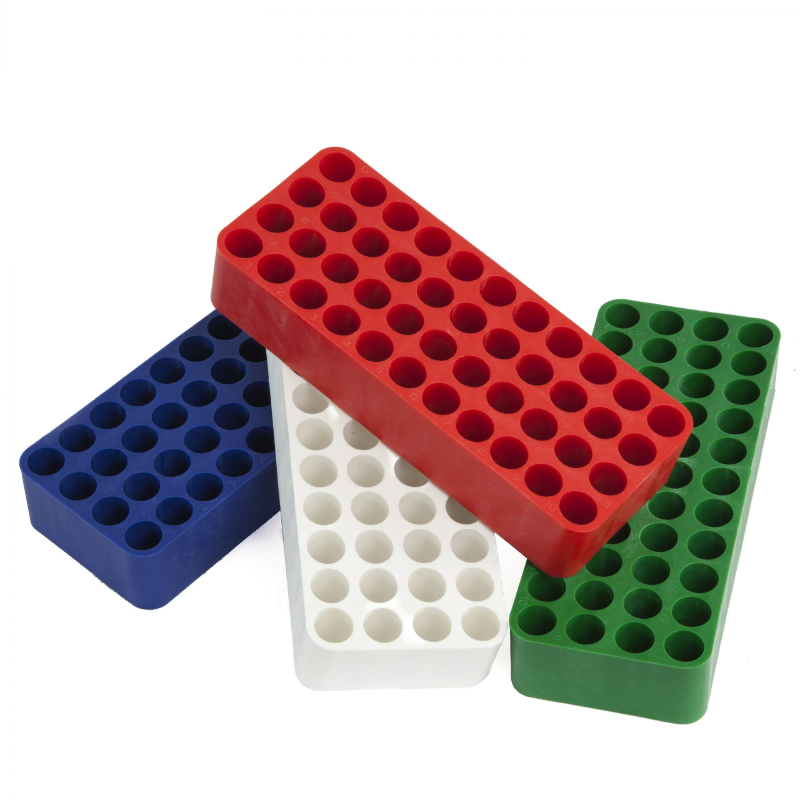 10mm, 12mm and 16mm racks have drainage holes in the bottom of each test tube cavity. (This enables the rack to be used in water baths or similar and facilitates cleaning of the rack).