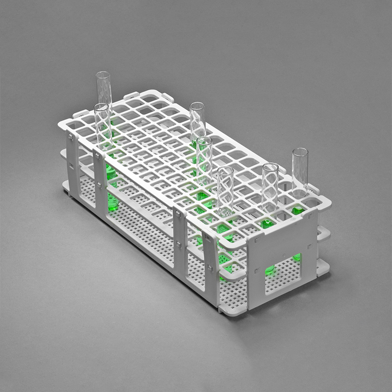 • Features end plates for labeling; numbered and lettered rows for tube identification