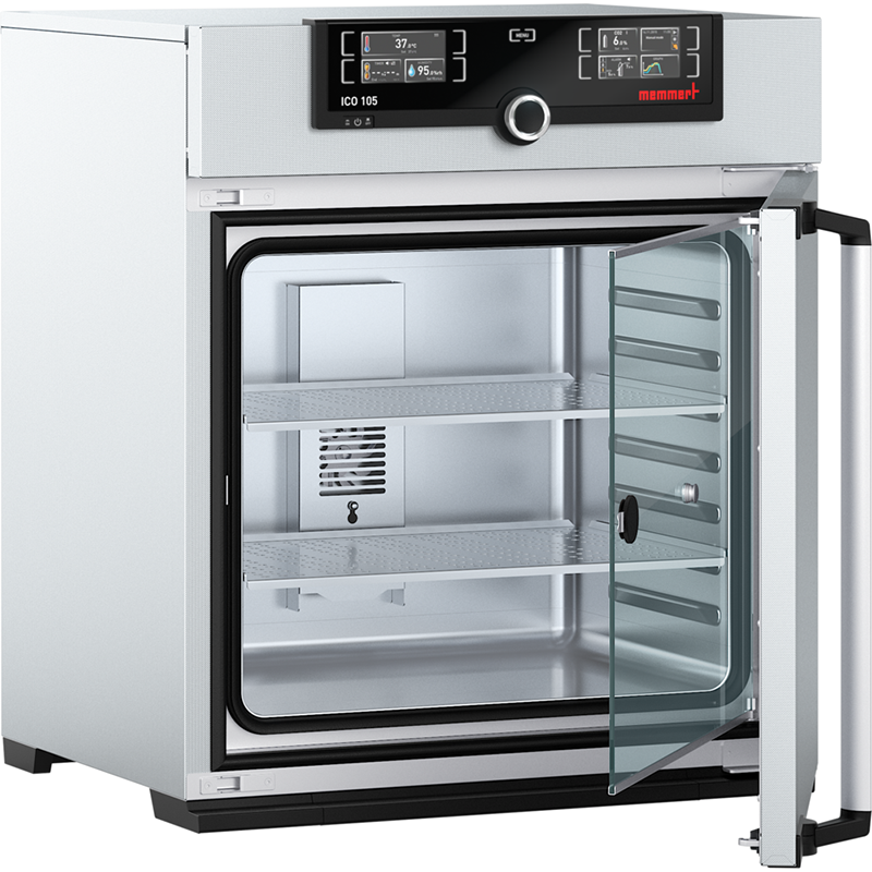The control system of the Memmert CO2 incubator ICO is so finely tuned that the appliance reaches the setpoint temperature very quickly and without temperature overshoots. Alarm notifications to your mobile phone guarantee the safety of the chamber load, and the battery-buffered ControlCOCKPIT ensures continuous CO2 control even when there is a power failure. Ideal hygiene is a given too: rounded edges enable easy and thorough cleaning, the interior can be sterilised within 60 minutes at 180 °C.