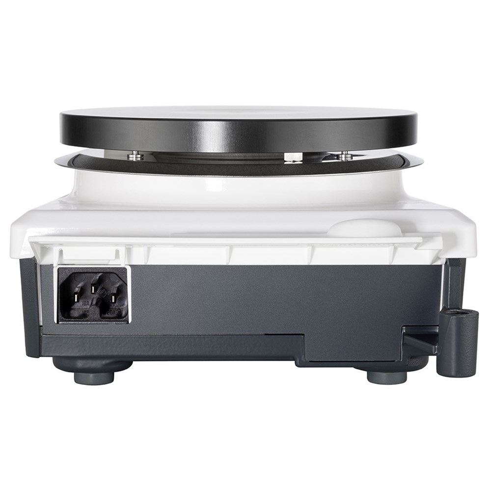 The patented Kera-Disk® plate made of aluminum with a ceramic coating is chemical-resistant, scratch-resistant and has a diameter of 145 mm. This unique size makes it suitable for use with many accessories and samples on a small footprint.