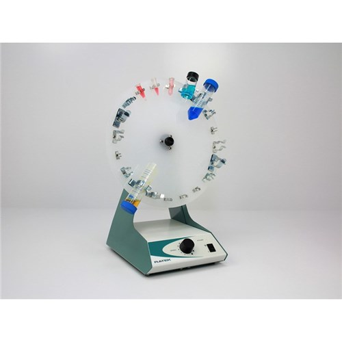 Variable speed range to 50 RPM Adjustable disc angle from horizontal to vertical Quiet operation Can accommodate small-medium tubes and bottles Customised discs available