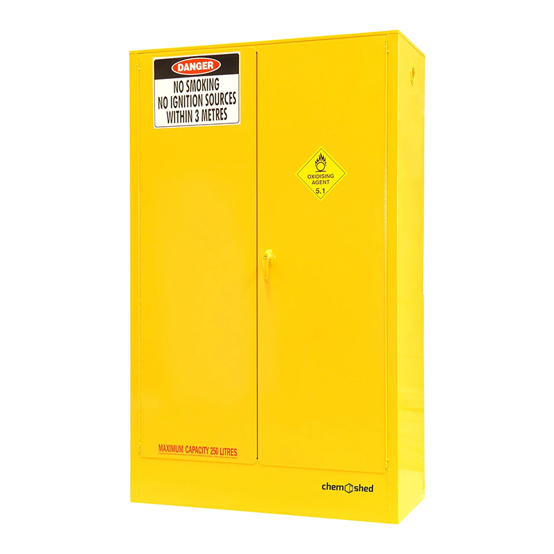 Available in a range of sizes from 30L to 250L the cabinets guard against combustion and help ensure that oxidising agents don’t fall into the wrong hands.