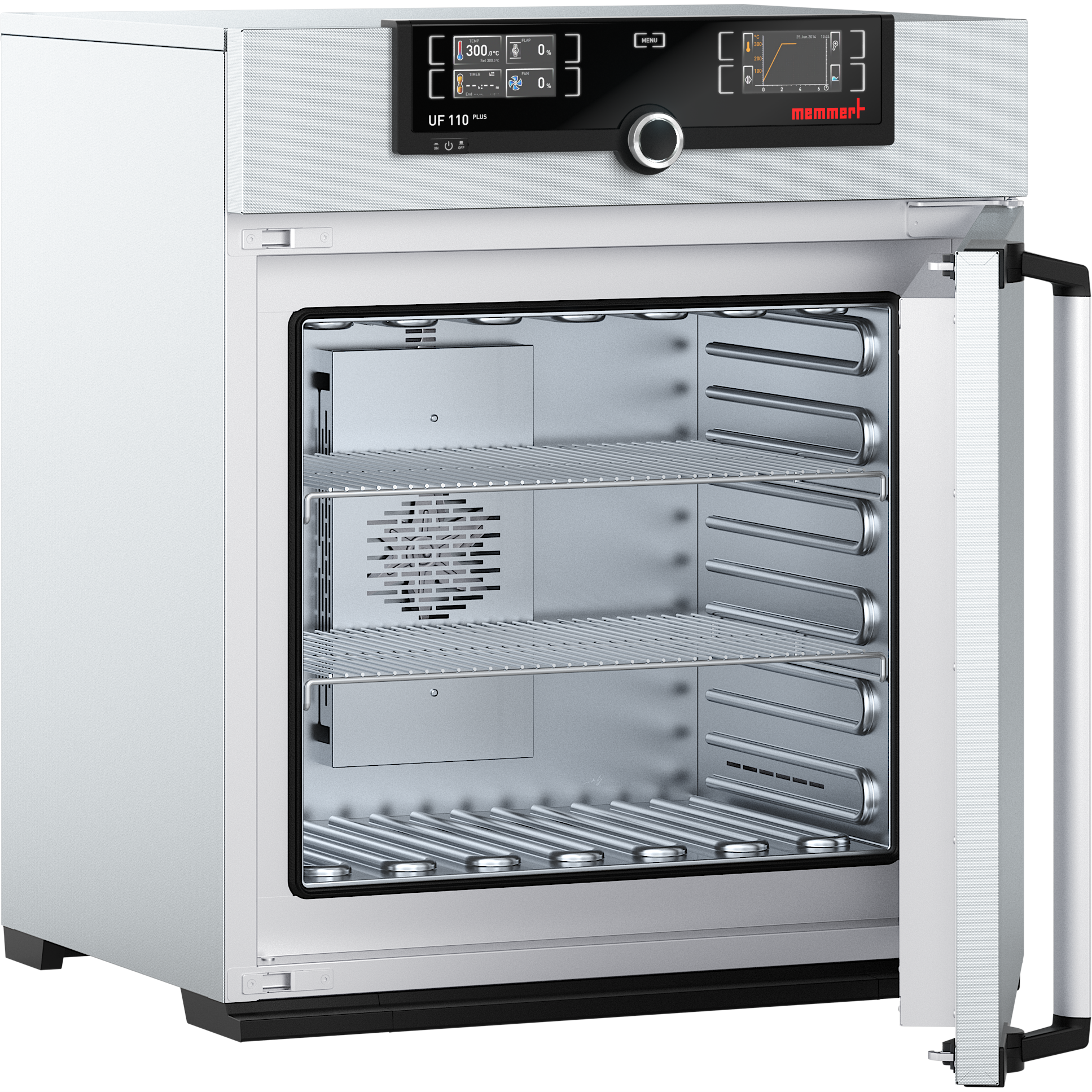 The universally applicable lab oven U is Memmert’s classic appliance for temperature control in science, research and material tests in industry. The technologically perfected masterpiece made of high-quality, hygienic, easy-to-clean stainless steel leaves nothing to be desired in terms of ventilation and control technology, overtemperature protection and precisely tuned heating technology.
