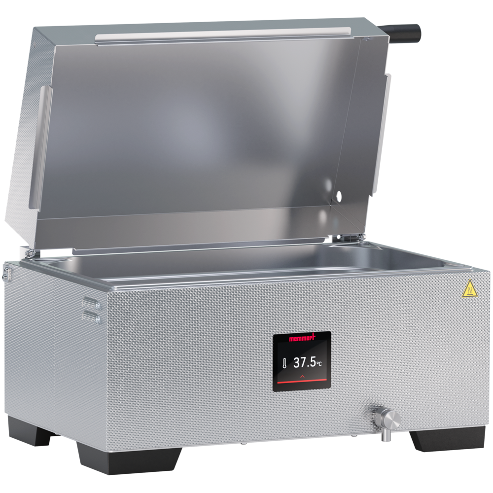 Perfect for everyday use in the laboratory: The high-quality stainless steel container with rounded corners is easy to clean and can be completely drained using the standard drain valve without residue left behind. The compact ergonomic design means the Memmert WTB fits on any laboratory table.