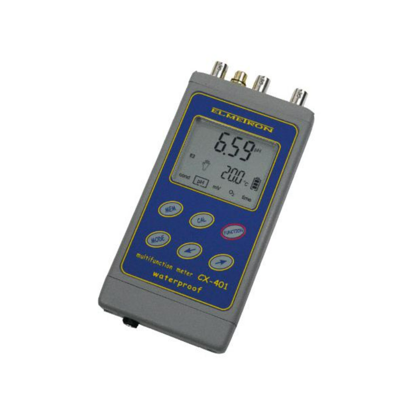 • CX-401 measures: pH, redox potential (mV), conductivity, resistivity, salinity in KCl or NaCl, TDS, dissolved oxygen in % of saturation or in mg/l, atmospheric pressure and temperature.