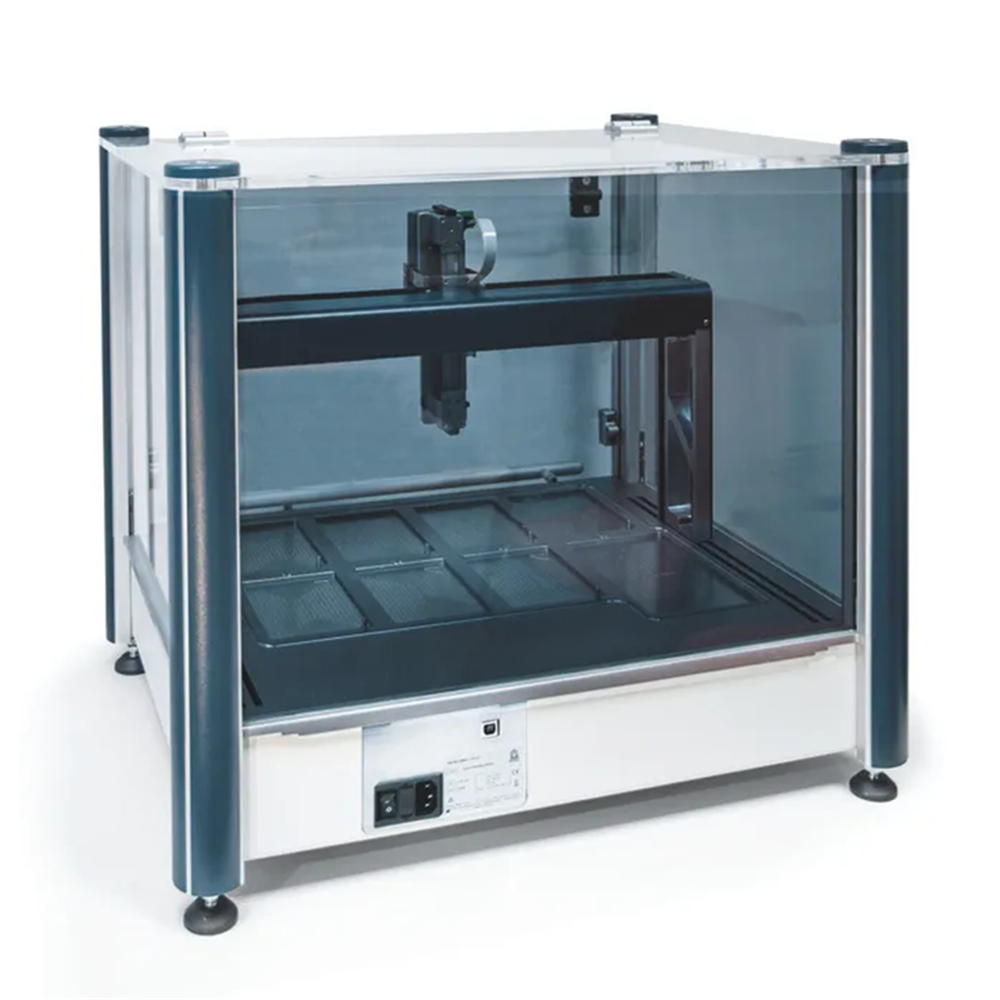 Seven ANSI / SLAS formatted workplaces can be freely assigned, including PCR tubes and strips, microcentrifuge tubes, reservoirs, and 96- or 384-well plates. Liquid ends are available in single-channel sizes and 8-channel versions for contact-free fluid delivery. The Liquid Handling Station's compact design and space-saving front door make it an ideal fit where benchtop space is limited.