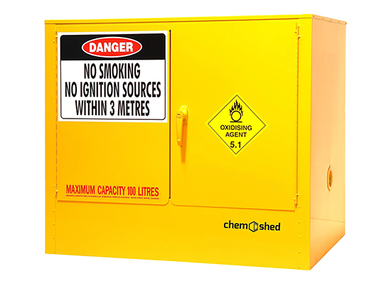 Chemshed Oxidising Agent cabinets have been thoroughly scientifically  tested. They’re relied on by labs and industries around New Zealand who use chemicals including sulphuric acid and hydrogen peroxide. These Class 5.1 substances demand a high level of security and these cabinets, built to comply with the design requirements of AS4326-2008, provide it.