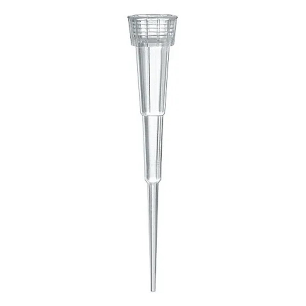 The nano-cap™ tip was specially developed for the nanoliter range and hence is ideal for molecular biological applications such as PCR. It is 37 mm long, and features a capillary rise that is even visible to the bare eye at 0.1 μl. The capillary part of the tip conveniently fills gel wells for gel electrophoresis systems from most manufacturers. The racked tips are colorless and placed into a grey-colored tip tray.